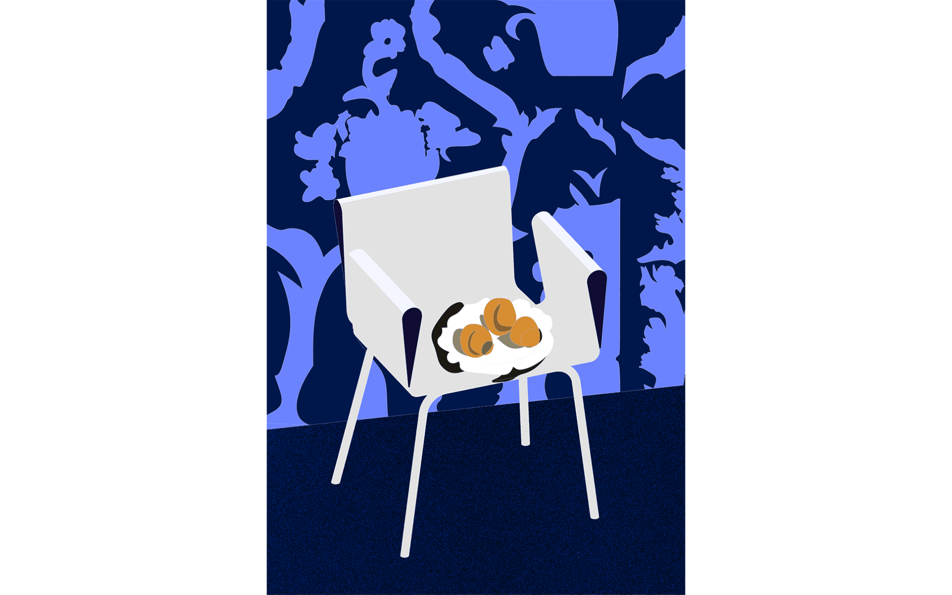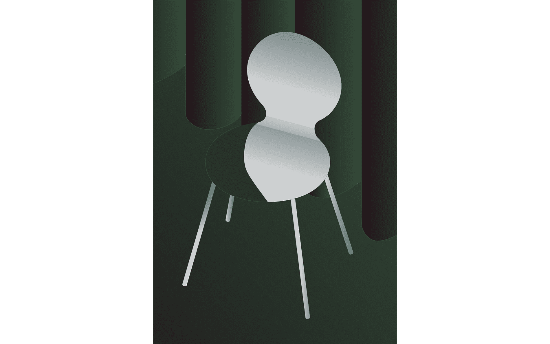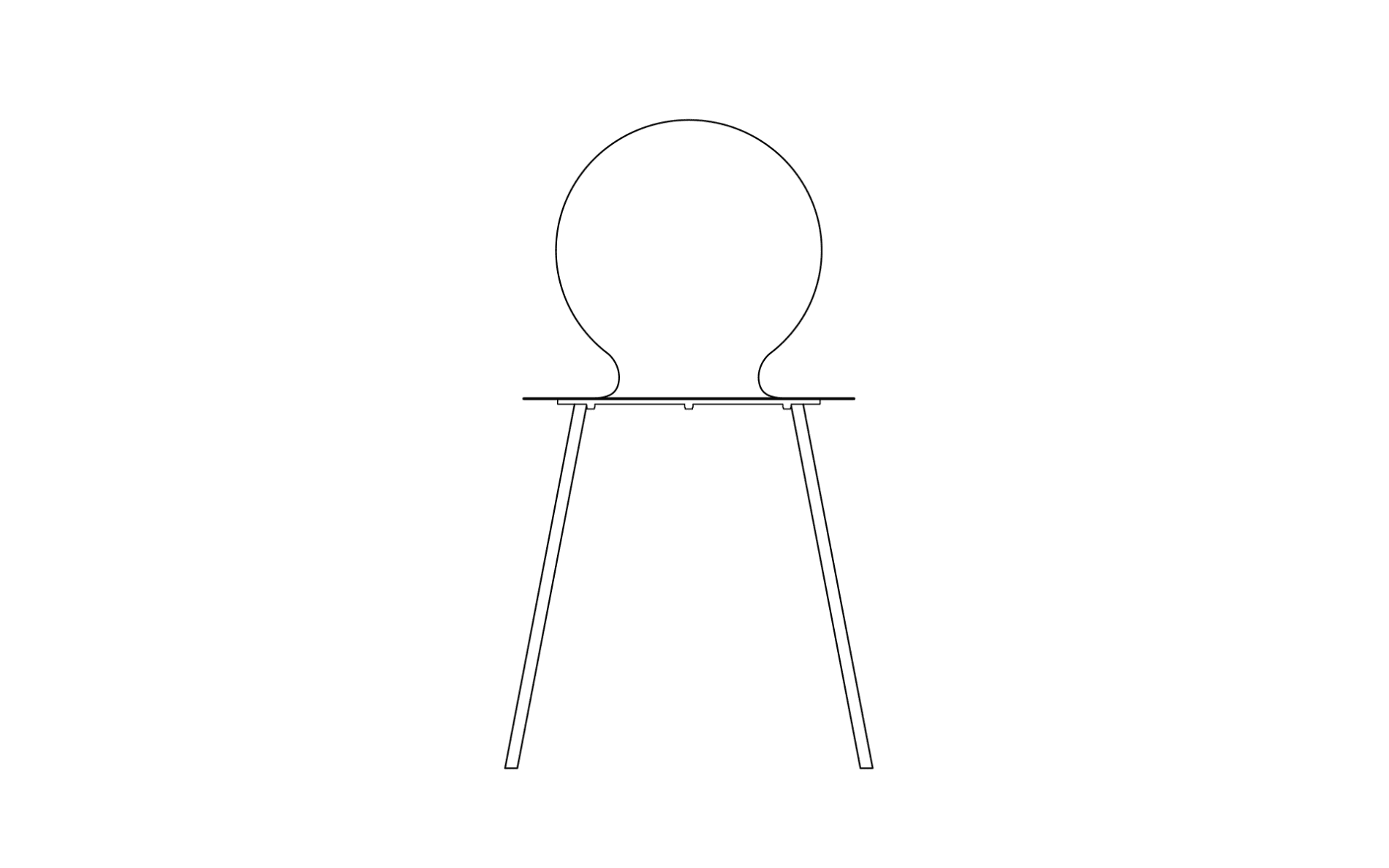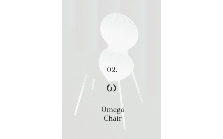 The steel sheet is bent to create two symmetrical curves. The chair balances between lightness and support, its form appearing lighter than it truly is.