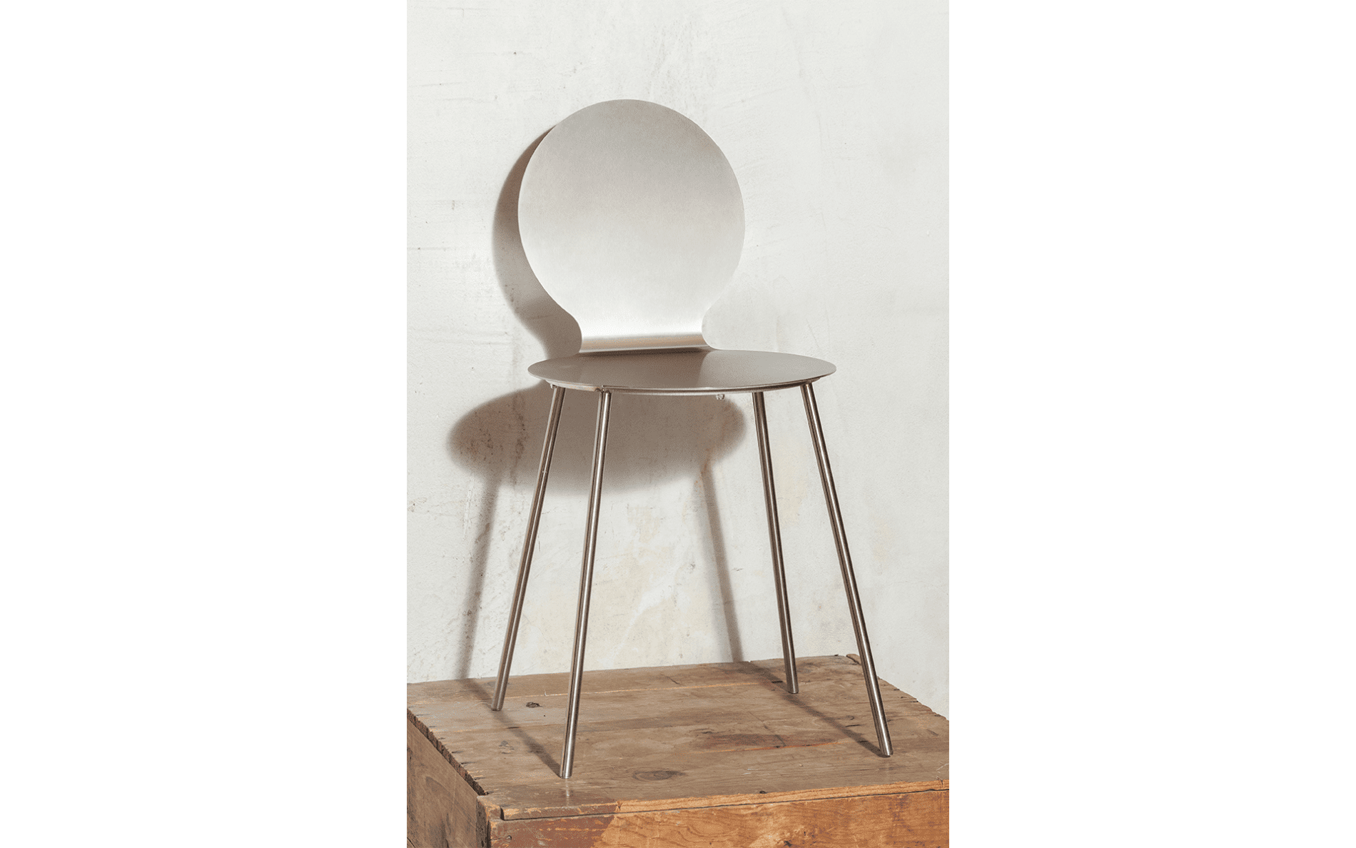 The Omicron stool is a steel seat cut into a perfect circle—an object that feels self-evident, almost archetypal.